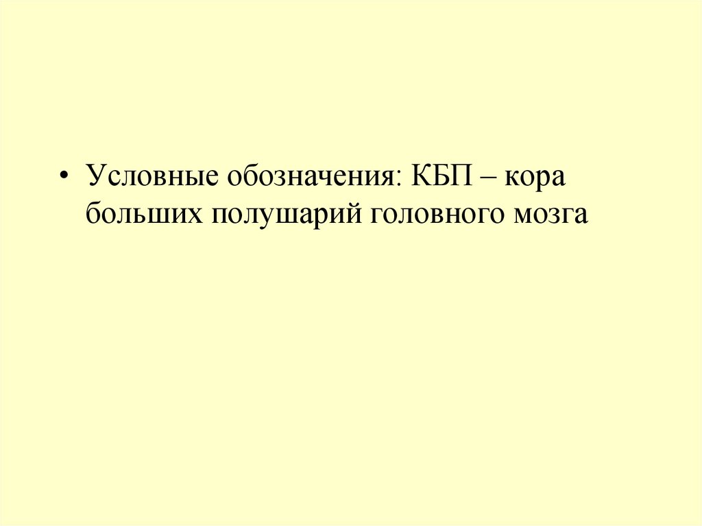 • Условные обозначения: КБП – корабольших полушарий головного мозга
