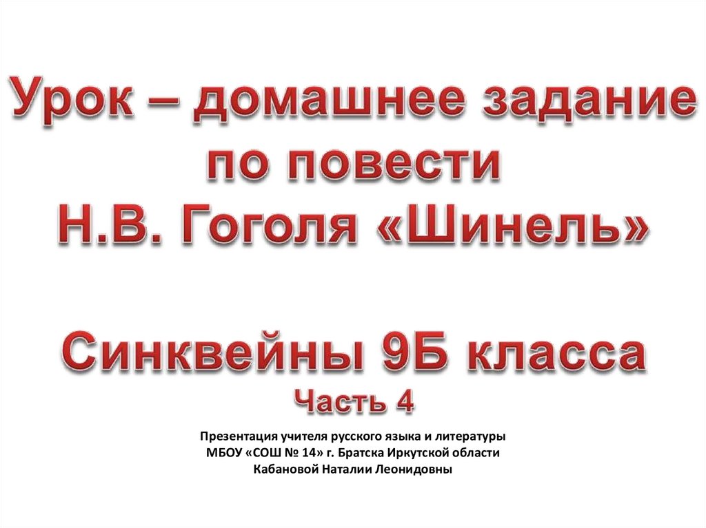 1. Презентация учителя русского языка и литературы МБОУ «СОШ № 14» г. Братска Иркутской области Кабановой Наталии Леонидовны