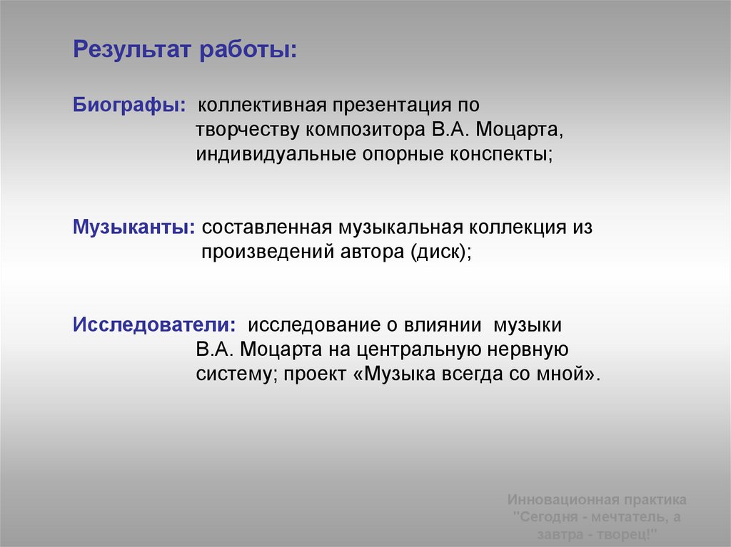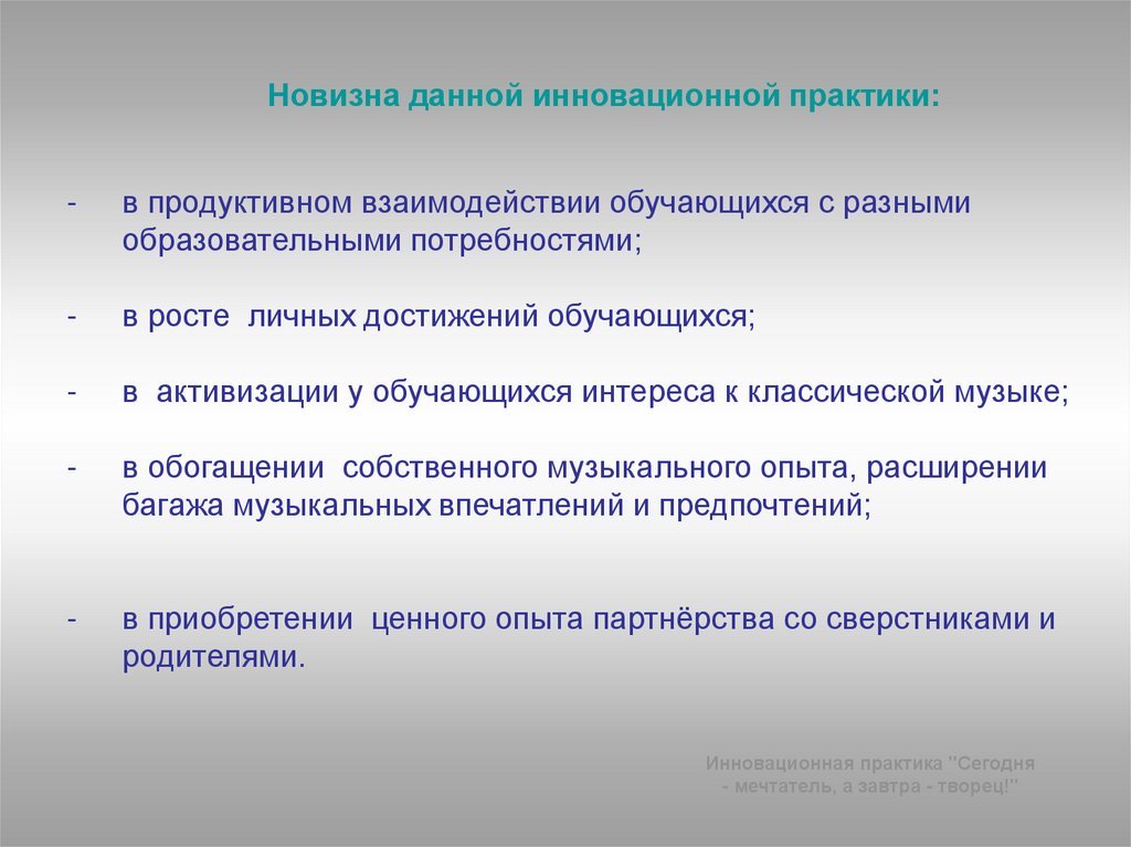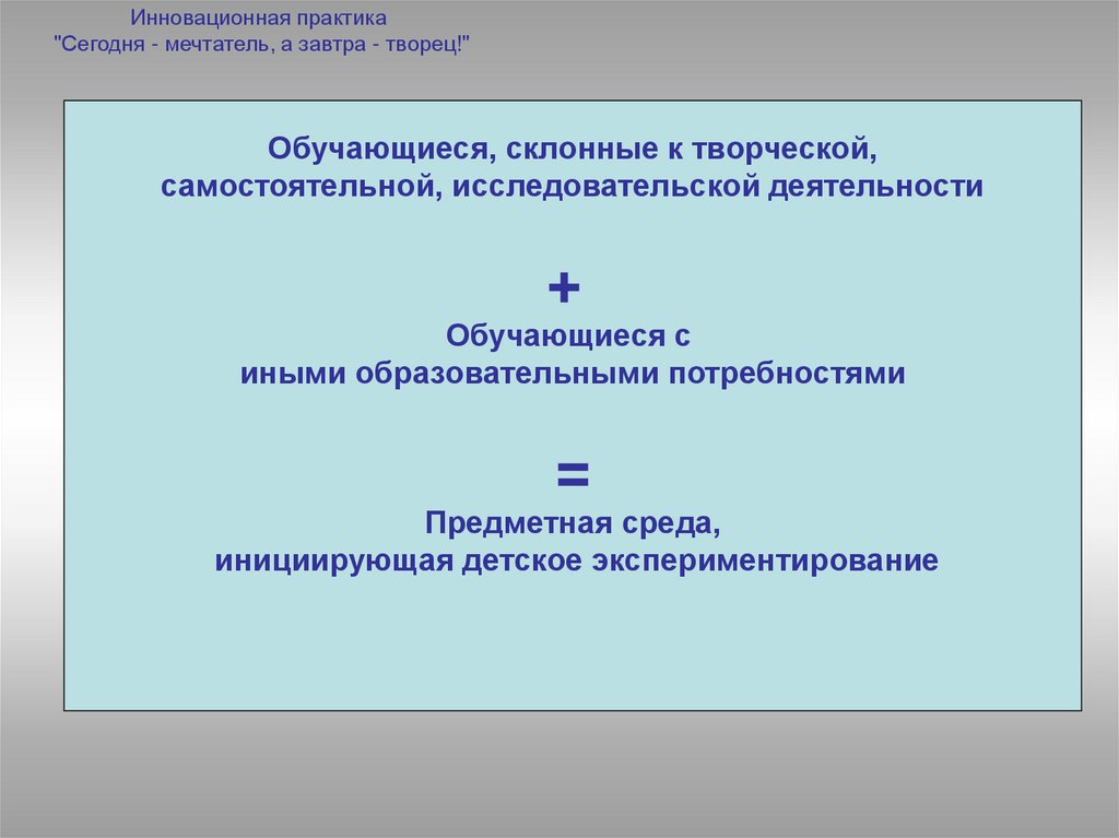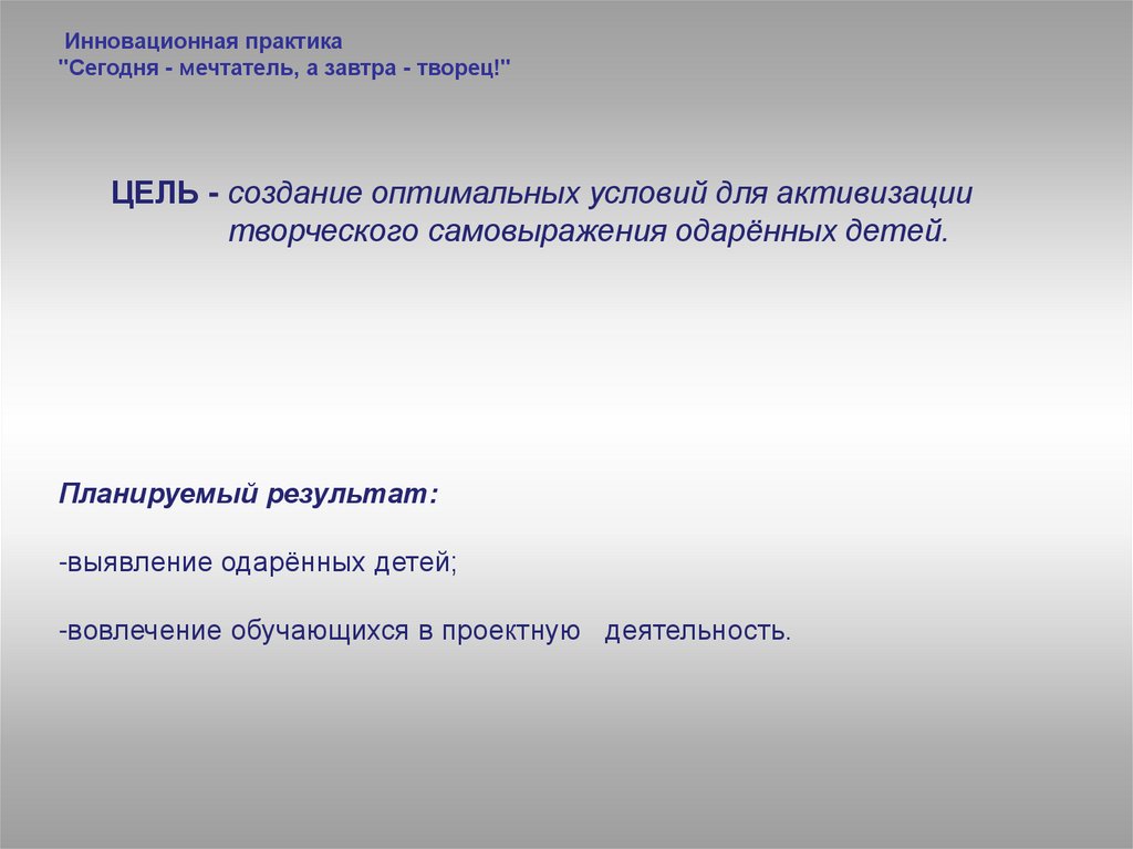 Инновационная практика«Сегодня - мечтатель,