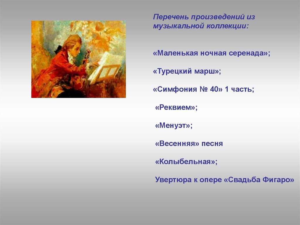 Перечень произведений измузыкальной коллекции: