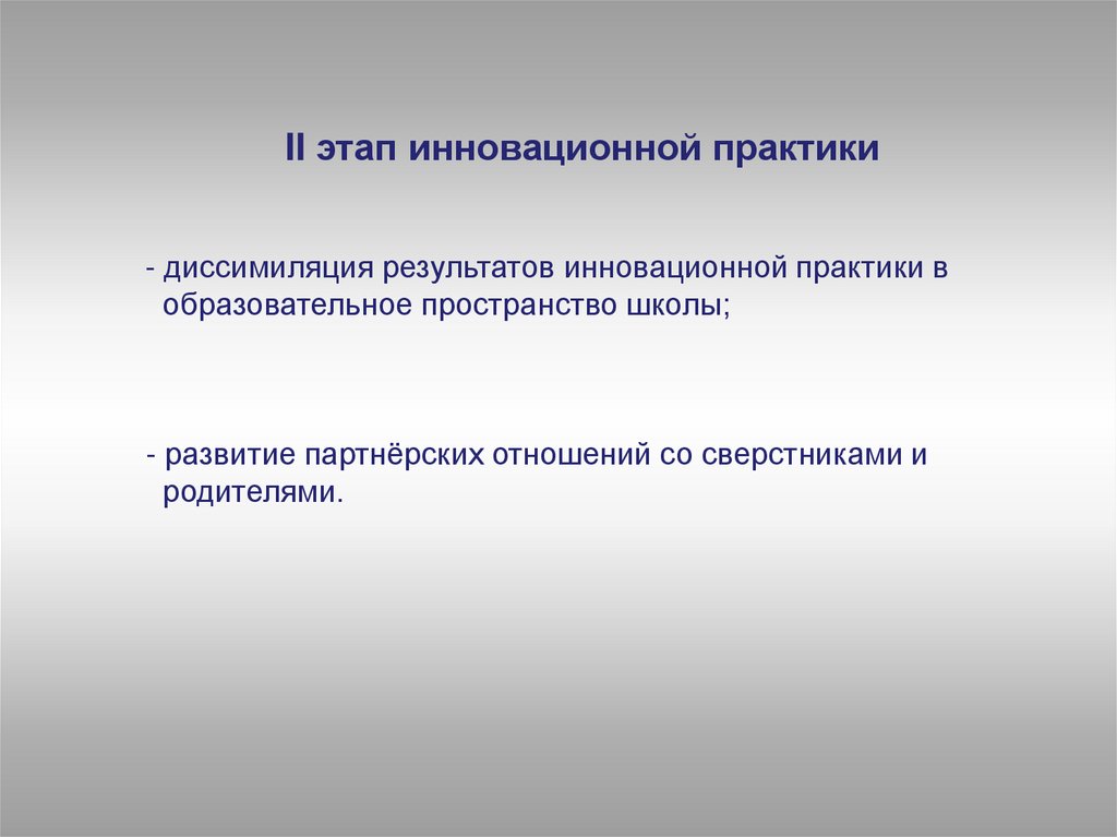 II этап инновационной практики- диссимиляция результатов инновационной практики в