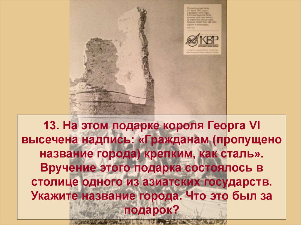 13. На этом подарке короля Георга VIвысечена надпись: «Гражданам (пропущено