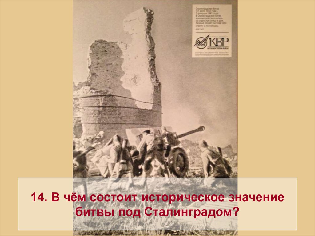 14. В чём состоит историческое значениебитвы под Сталинградом?