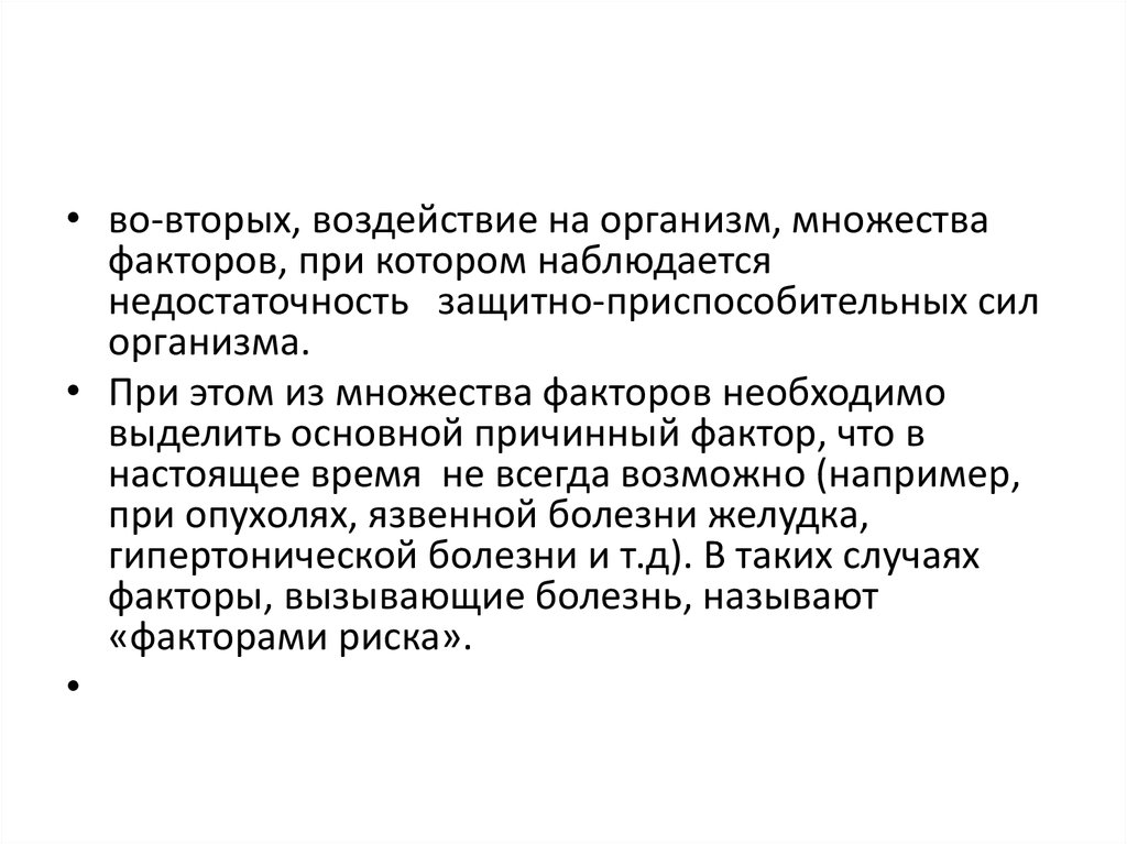 • во-вторых, воздействие на организм, множествафакторов, при котором наблюдается