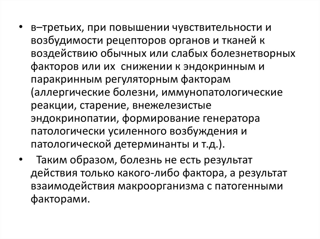 • в–третьих, при повышении чувствительности ивозбудимости рецепторов органов и тканей к