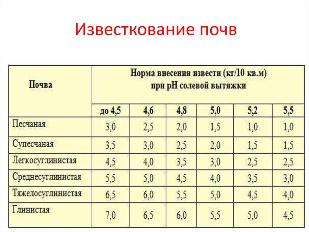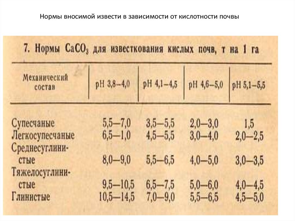 Нормы вносимой извести в зависимости от кислотности почвы20.