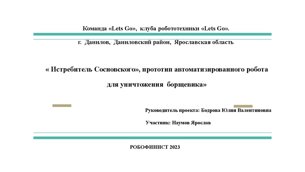 Команда «Lets Go», клуба робототехники «Lets Go».г. Данилов, Даниловский район, Ярославская область