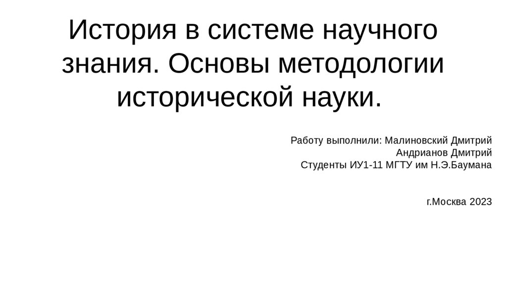 История в системе научного знания. Основы методологии исторической науки