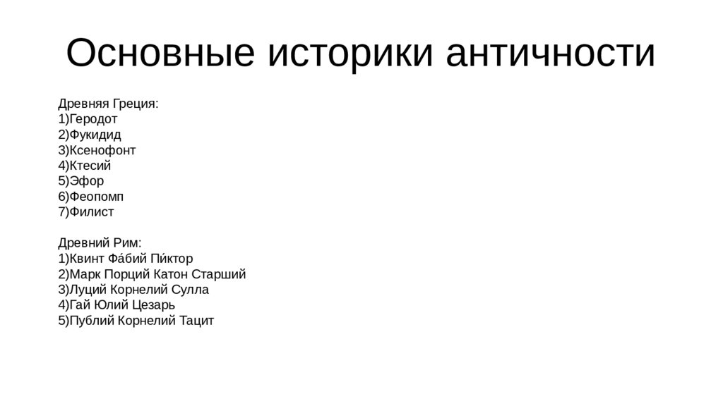 Основные историки античностиДревняя Греция: