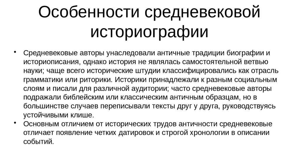 Основным отличием от исторических трудов античности средневековые