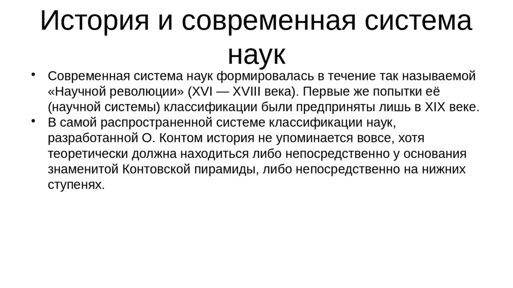 История и современная системанаук