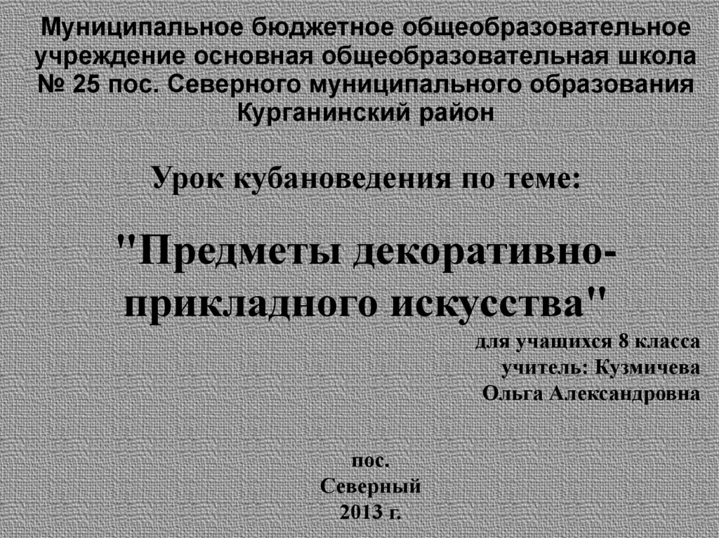 1. Муниципальное бюджетное общеобразовательное учреждение основная общеобразовательная школа № 25 пос. Северного муниципального