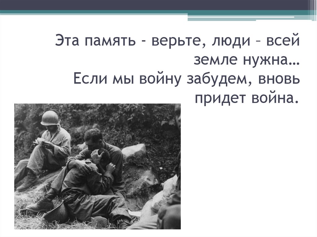 Эта память - верьте, люди – всейземле нужна…
