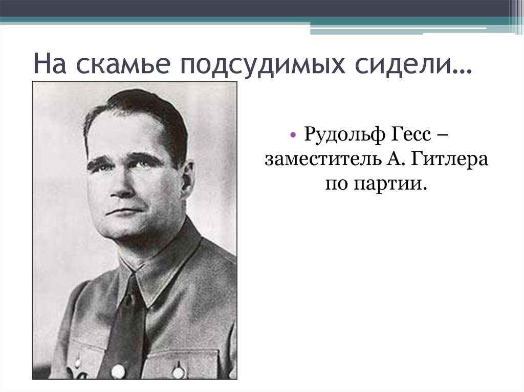 На скамье подсудимых сидели…• Рудольф Гесс –