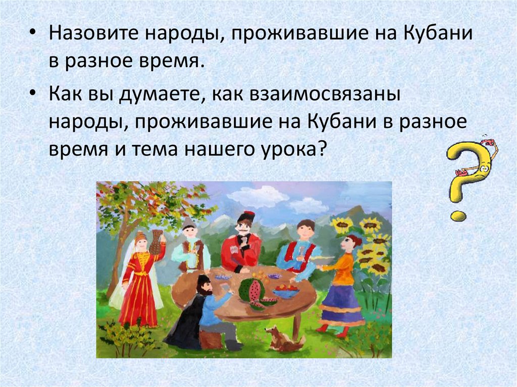 • Назовите народы, проживавшие на Кубанив разное время.