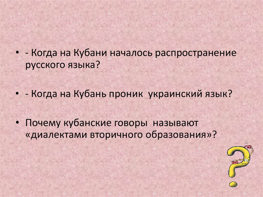 • - Когда на Кубани началось распространениерусского языка?