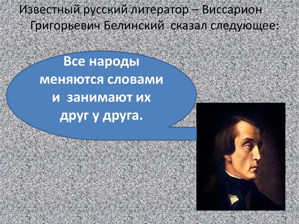 Известный русский литератор – ВиссарионГригорьевич Белинский сказал следующее:
