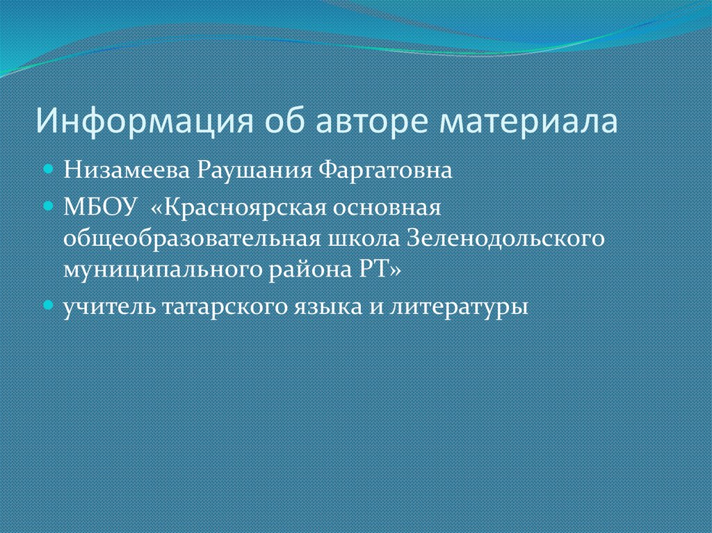 Информация об авторе материалаНизамеева Раушания Фаргатовна