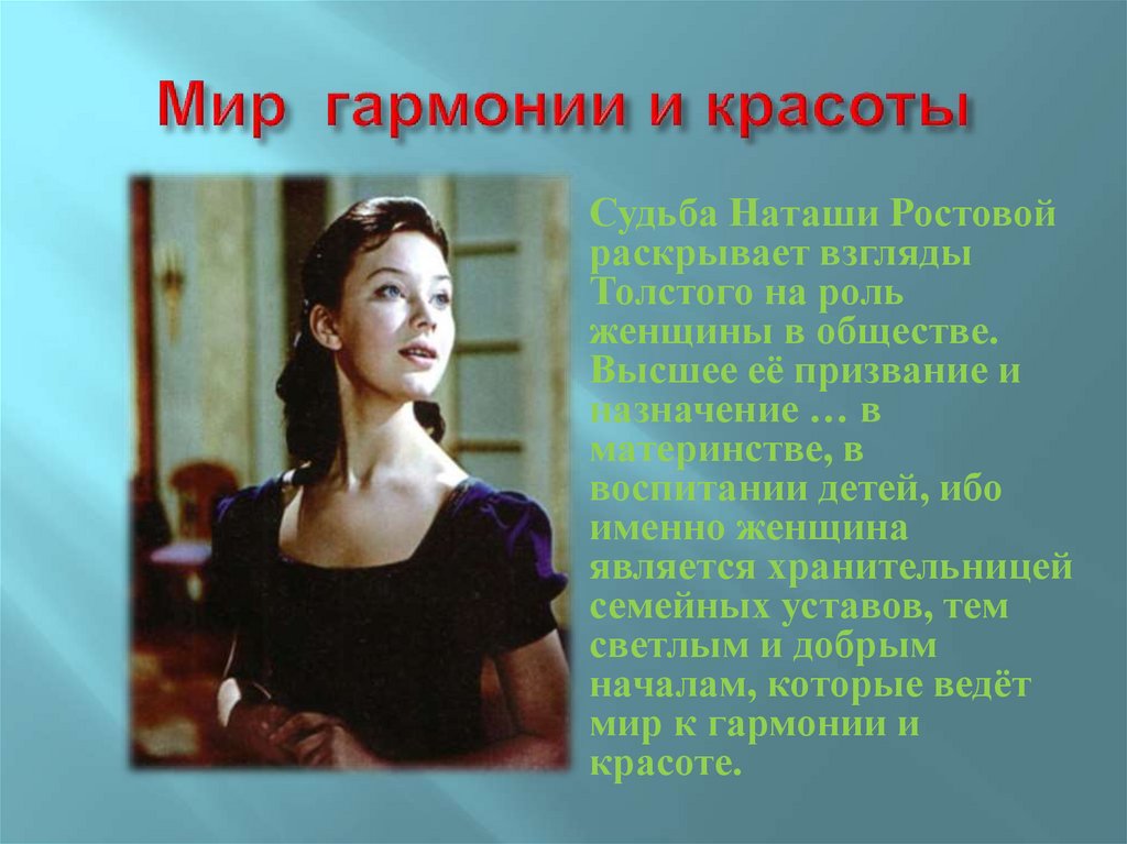 Наташа — любимая героиня Толстого, в ней онвоплотил лучшие женские качества: доброту,