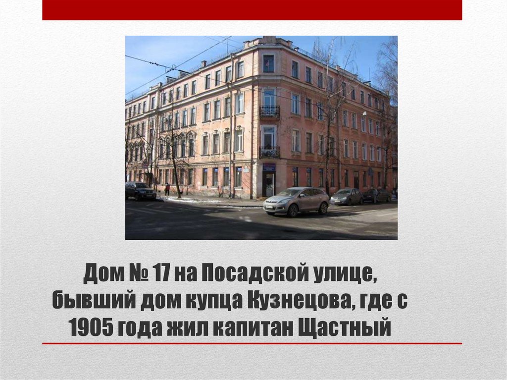 Дом № 17 на Посадской улице,бывший дом купца Кузнецова, где с