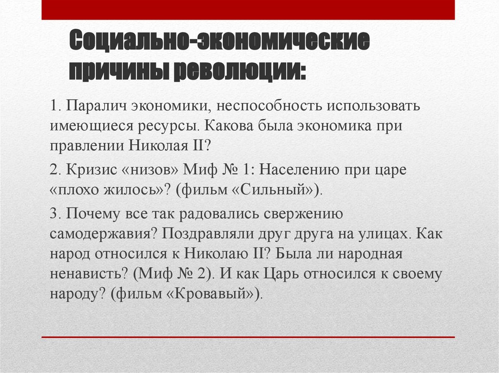 Социально-экономическиепричины революции: