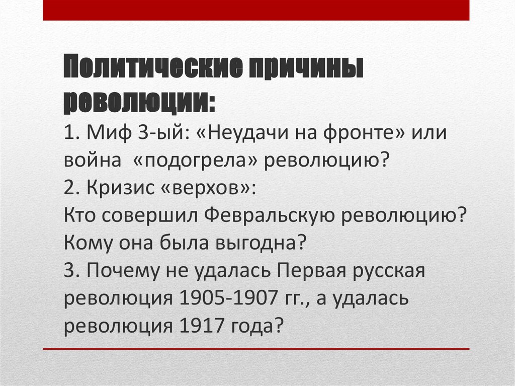 Политические причиныреволюции: