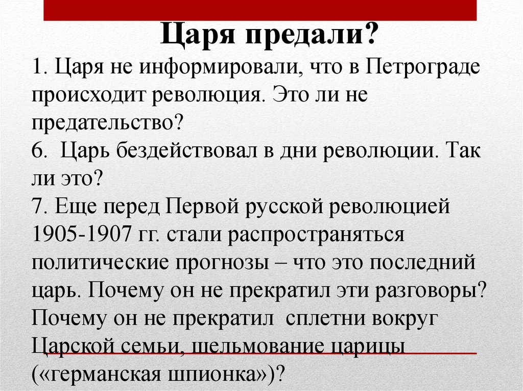 1. Почему царь не предотвратил революцию?