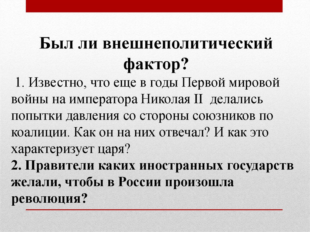 Был ли внешнеполитическийфактор?