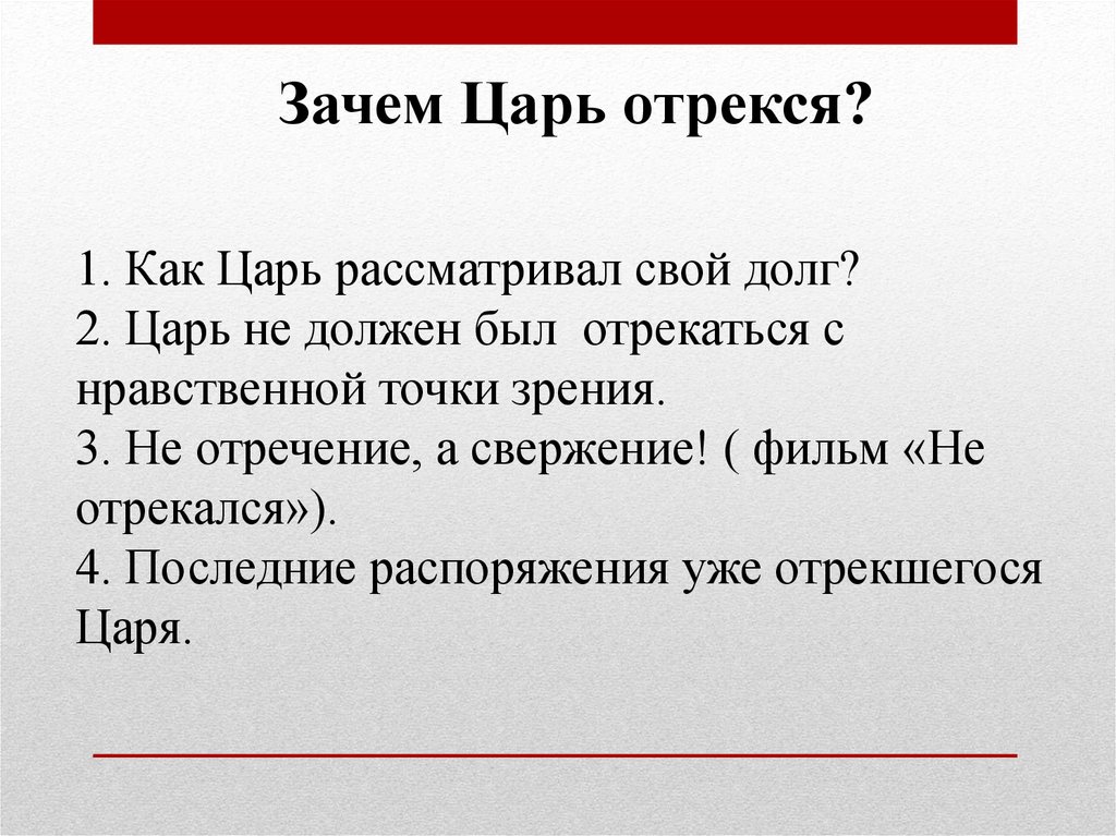 Зачем Царь отрекся?1. Как Царь рассматривал свой долг?