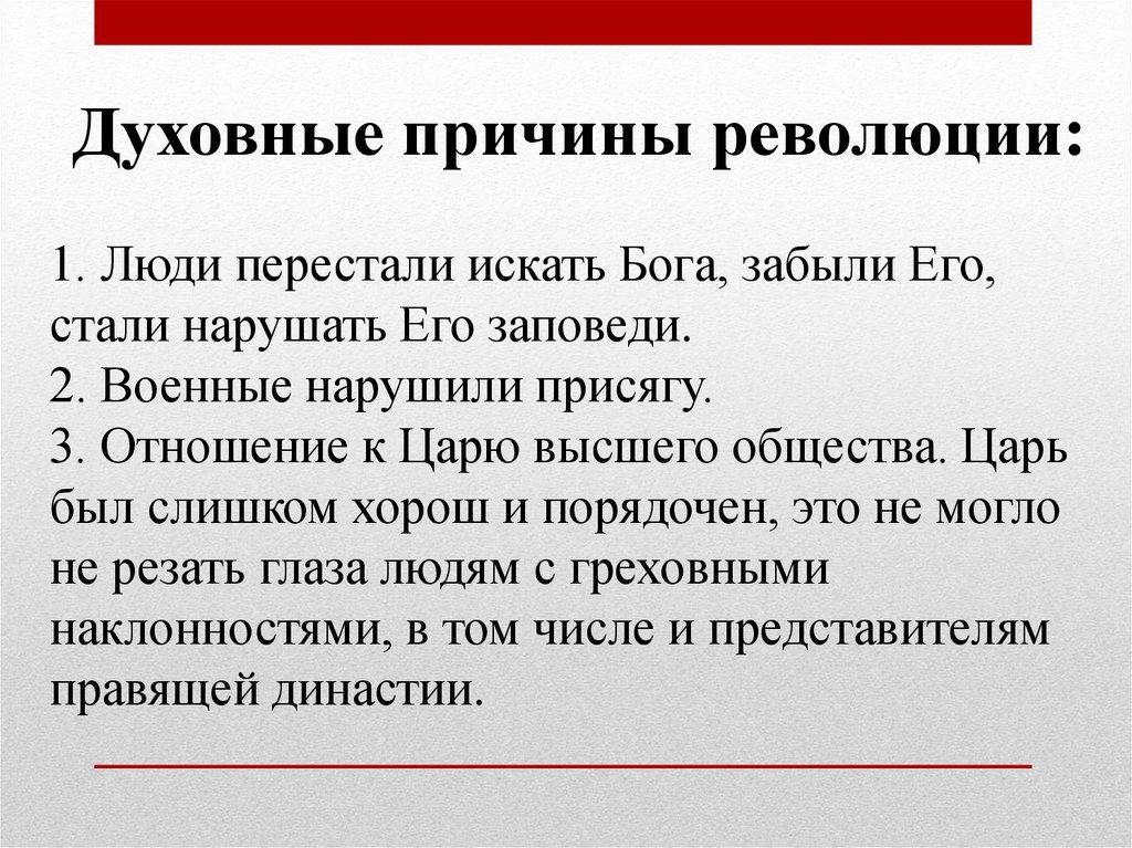 Духовные причины революции:1. Люди перестали искать Бога, забыли Его,
