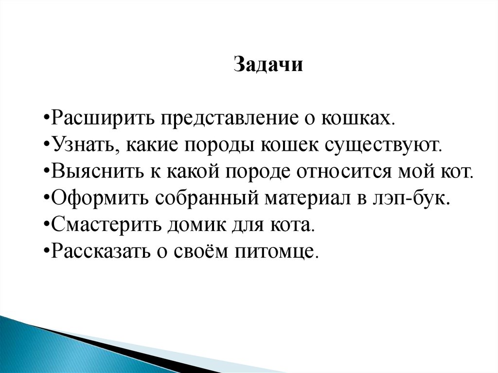 •Узнать, какие породы кошек существуют.