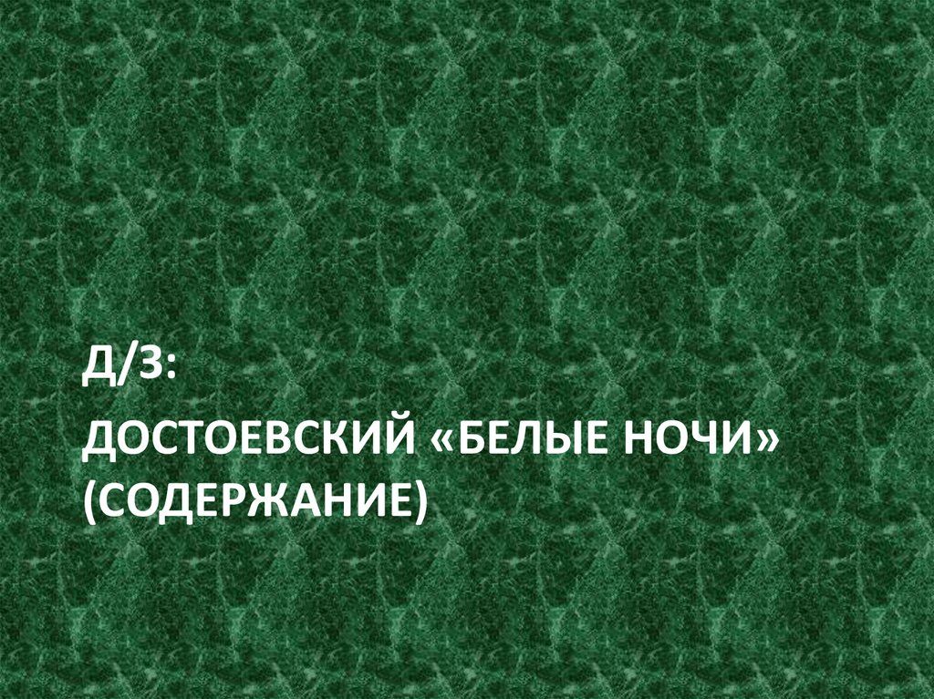Д/З:ДОСТОЕВСКИЙ «БЕЛЫЕ НОЧИ»