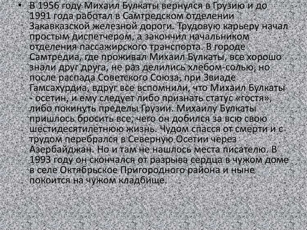 • В 1956 году Михаил Булкаты вернулся в Грузию и до1991 года работал в Самтредском отделении