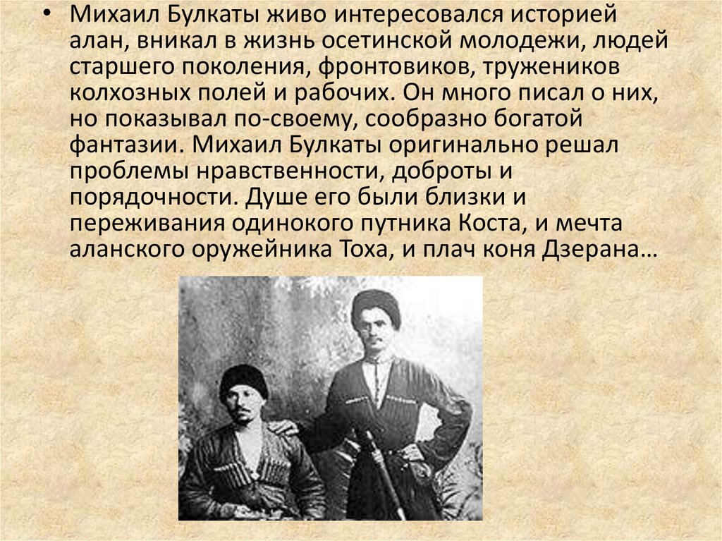 • Михаил Булкаты живо интересовался историейалан, вникал в жизнь осетинской молодежи, людей
