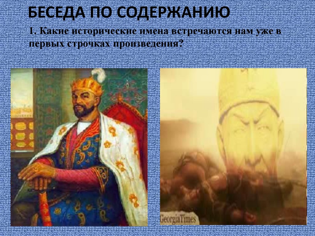 БЕСЕДА ПО СОДЕРЖАНИЮ1. Какие исторические имена встречаются нам уже в