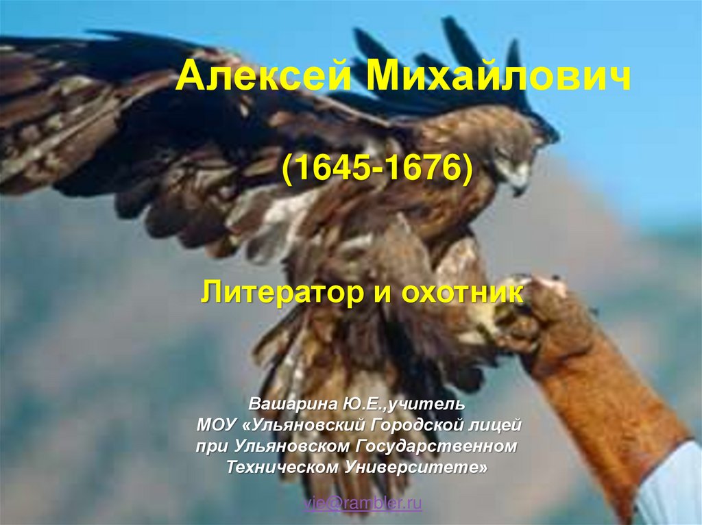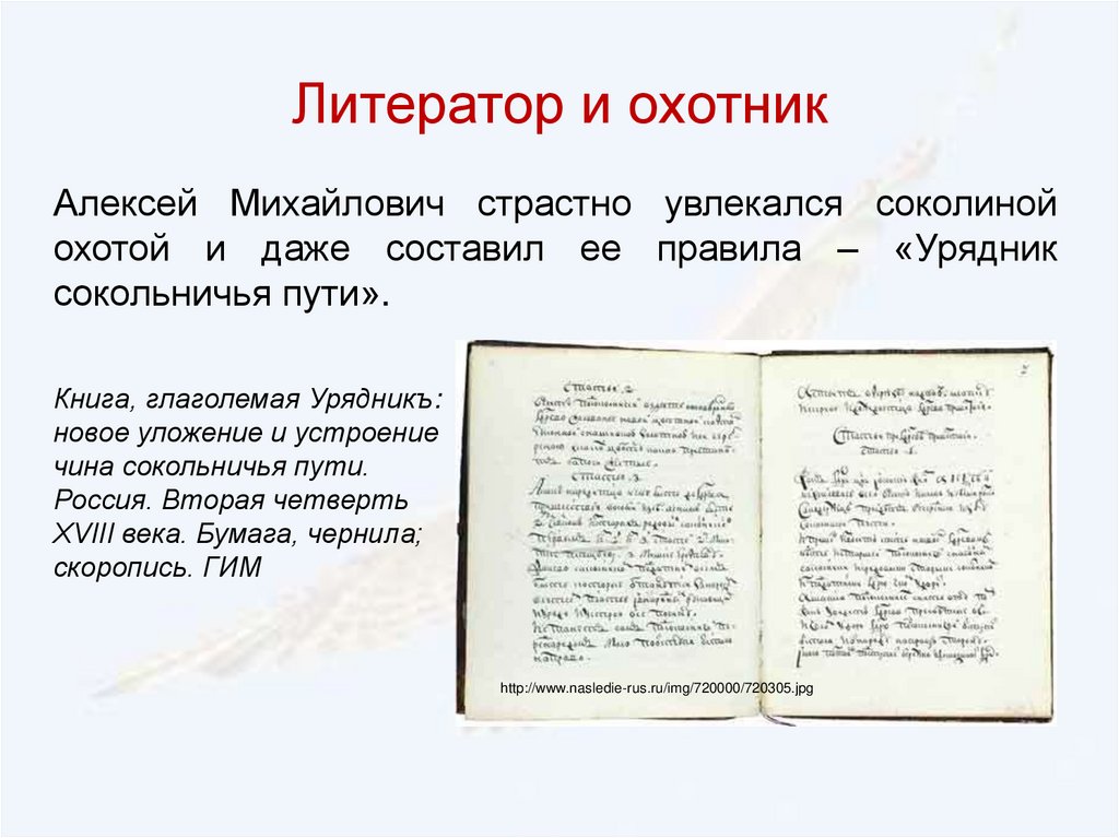 Алексей Михайлович (1645-1676). Литератор и охотник