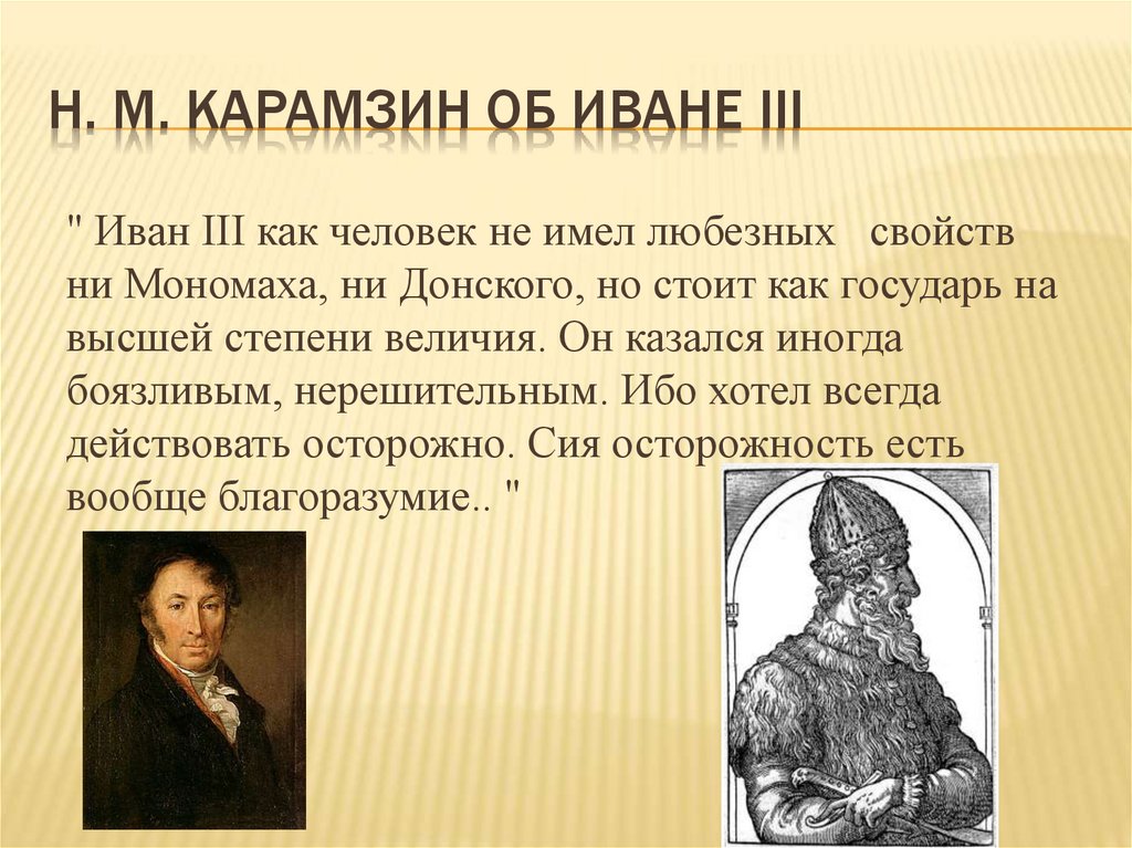 Н. М. КАРАМЗИН ОБ ИВАНЕ III" Иван III как человек не имел любезных свойств