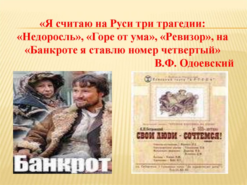 «Я считаю на Руси три трагедии:«Недоросль», «Горе от ума», «Ревизор», на