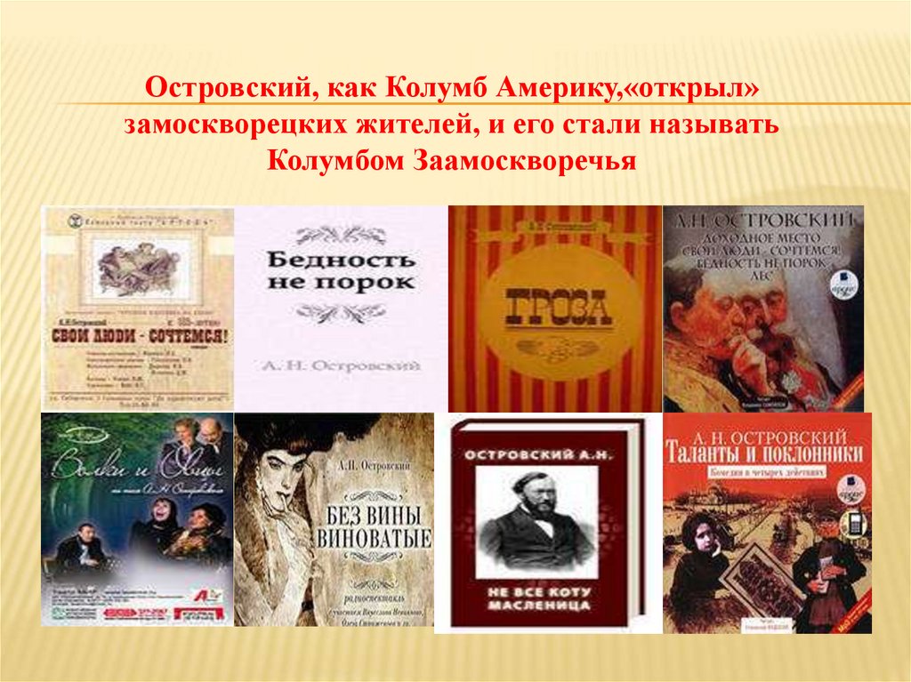 Островский, как Колумб Америку,«открыл»замоскворецких жителей, и его стали называть