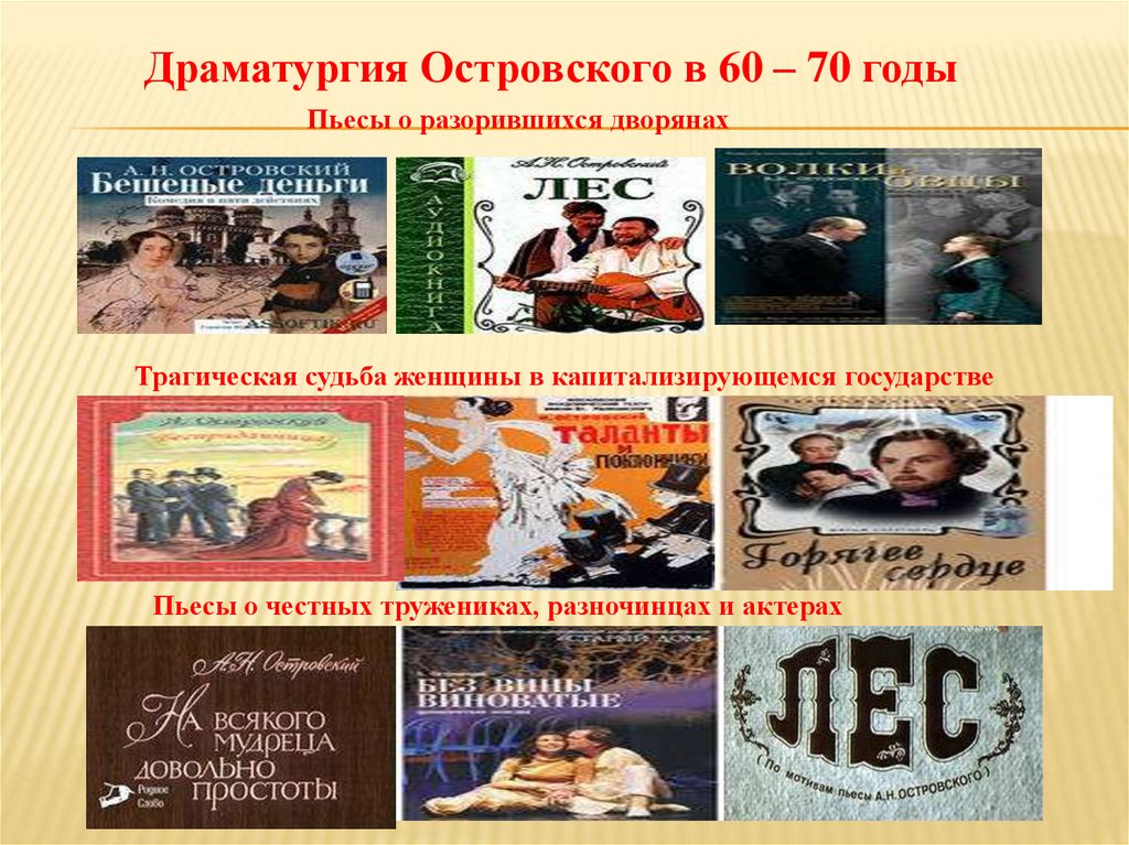 Драматургия Островского в 60 – 70 годыПьесы о разорившихся дворянах