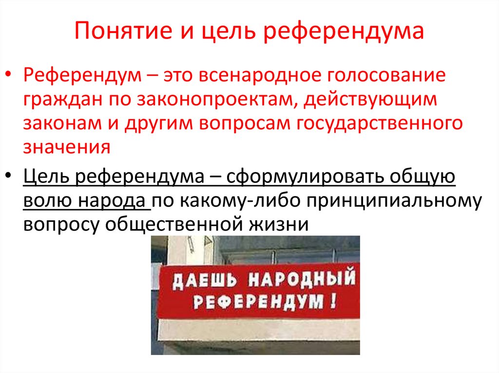 Понятие и цель референдума• Референдум – это всенародное голосование