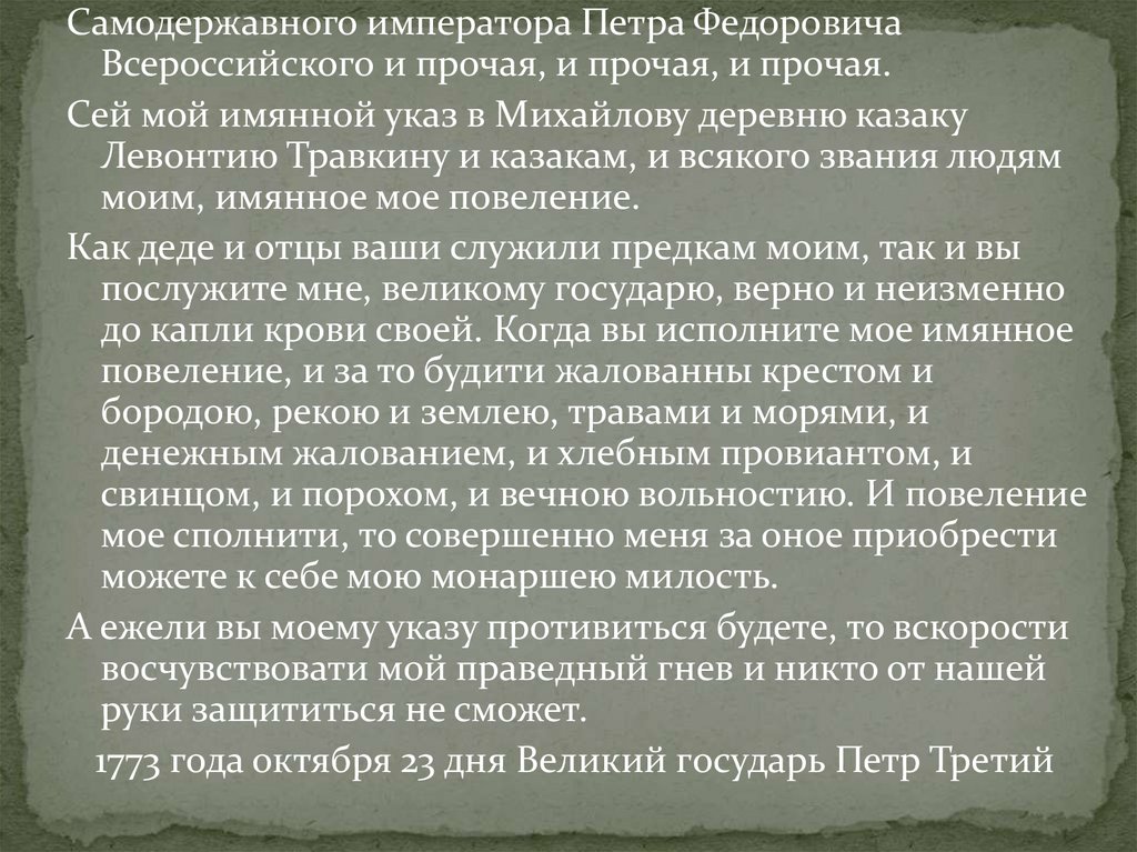 Самодержавного императора Петра ФедоровичаВсероссийского и прочая, и прочая, и прочая.