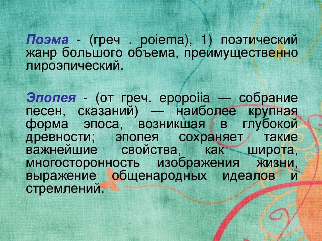 Поэма - (греч . poiema), 1) поэтическийжанр большого объема, преимущественно