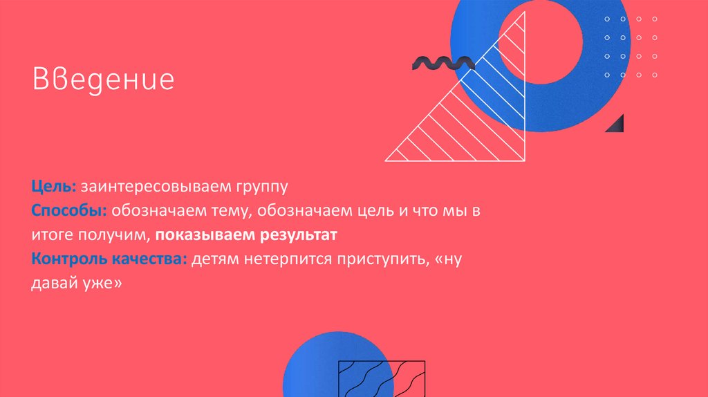 Цель: заинтересовываем группуСпособы: обозначаем тему, обозначаем цель и что мы в