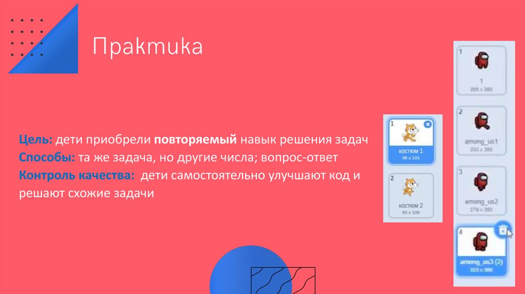 Цель: дети приобрели повторяемый навык решения задачСпособы: та же задача, но другие числа; вопрос-ответ
