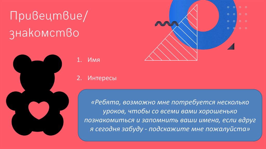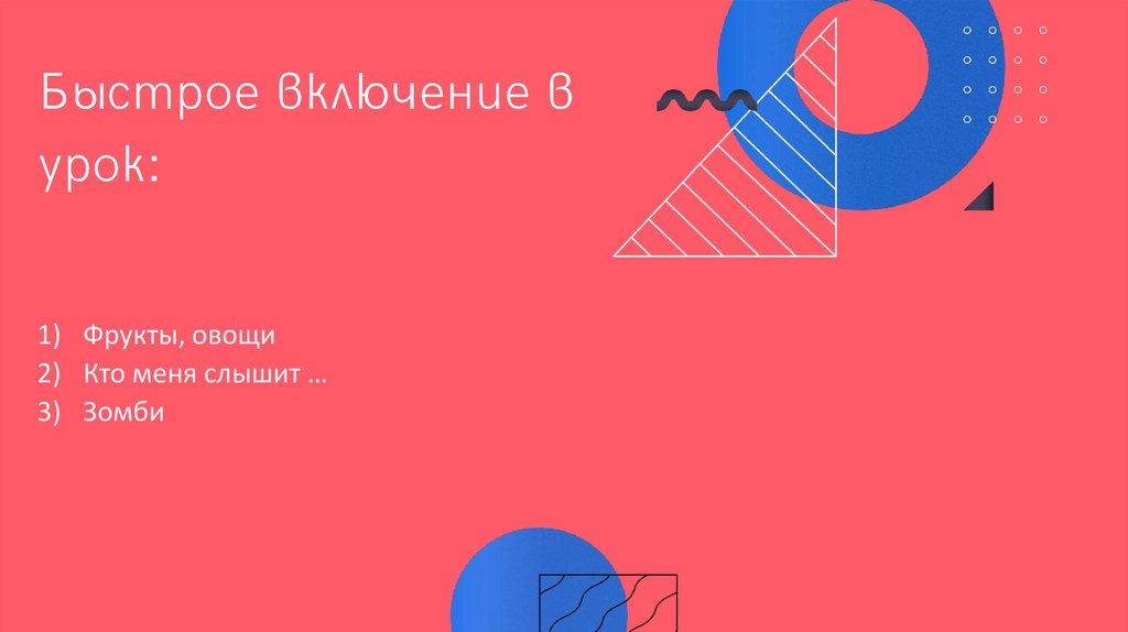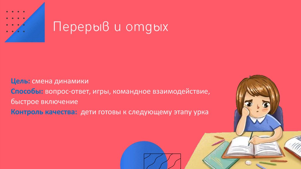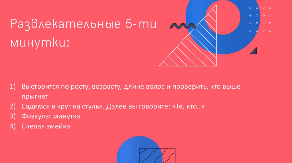 Цель: смена динамикиСпособы: вопрос-ответ, игры, командное взаимодействие,