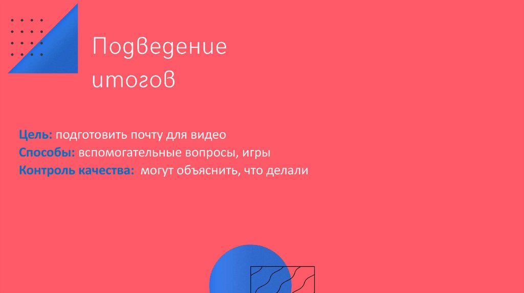 Цель: подготовить почту для видеоСпособы: вспомогательные вопросы, игры