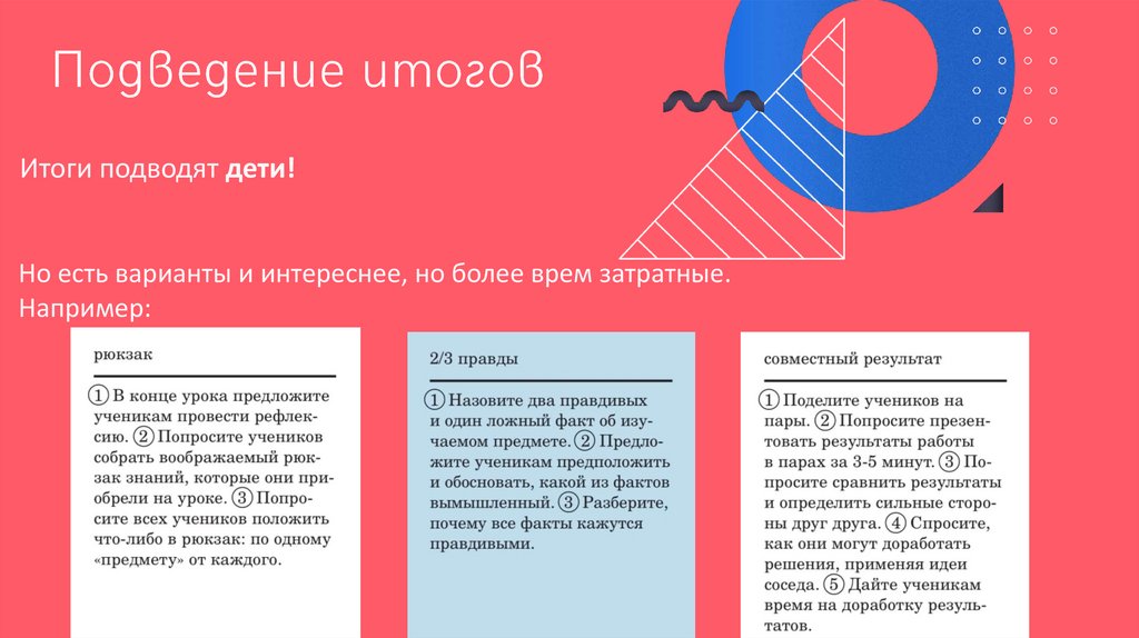 Итоги подводят дети!Но есть варианты и интереснее, но более врем затратные.