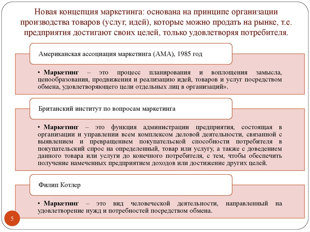 Новая концепция маркетинга: основана на принципе организациипроизводства товаров (услуг, идей), которые можно продать на рынке, т.е.