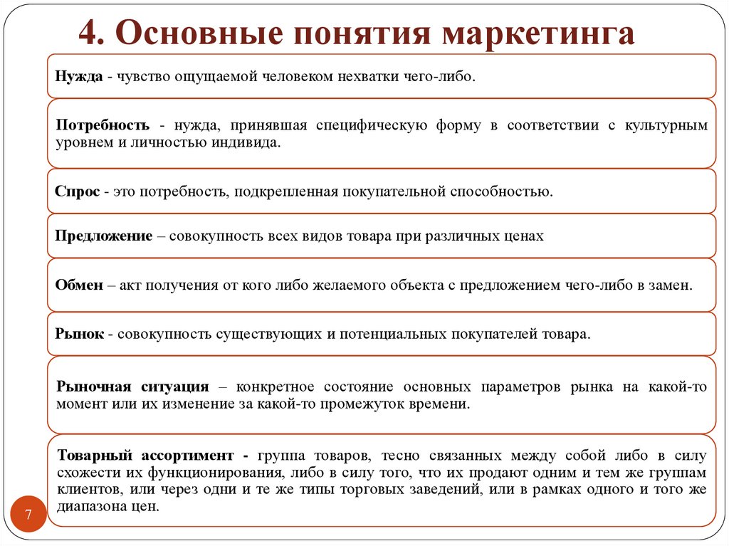 4. Основные понятия маркетингаНужда - чувство ощущаемой человеком нехватки чего-либо.